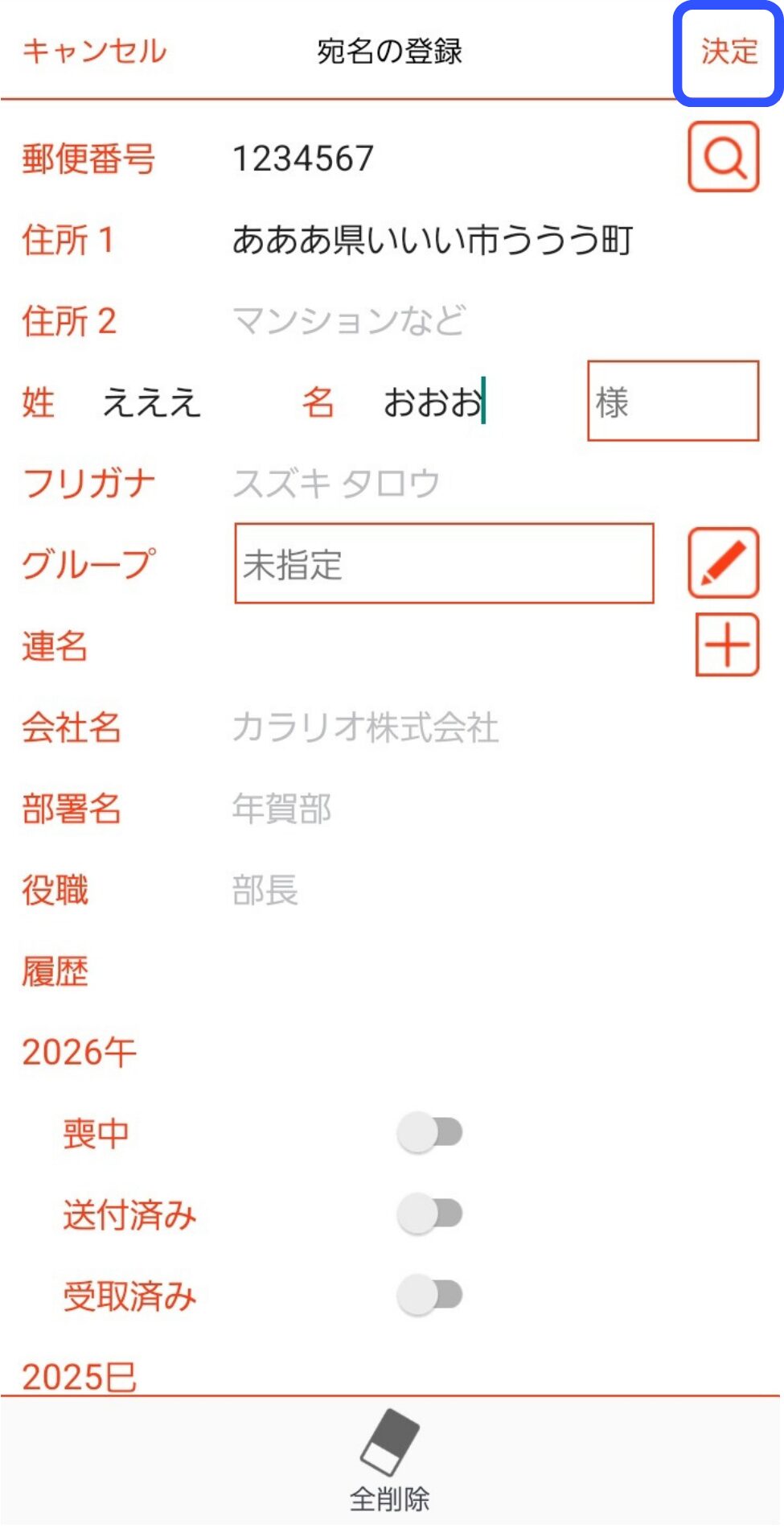 を入力したら右上の【決定】をクリックします。
