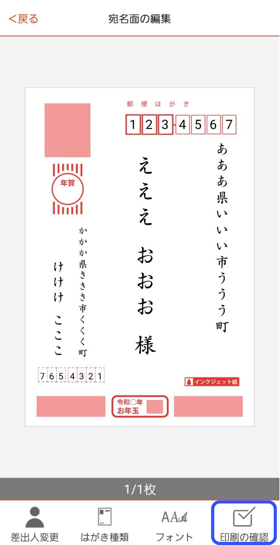 - 宛名面を作成する。