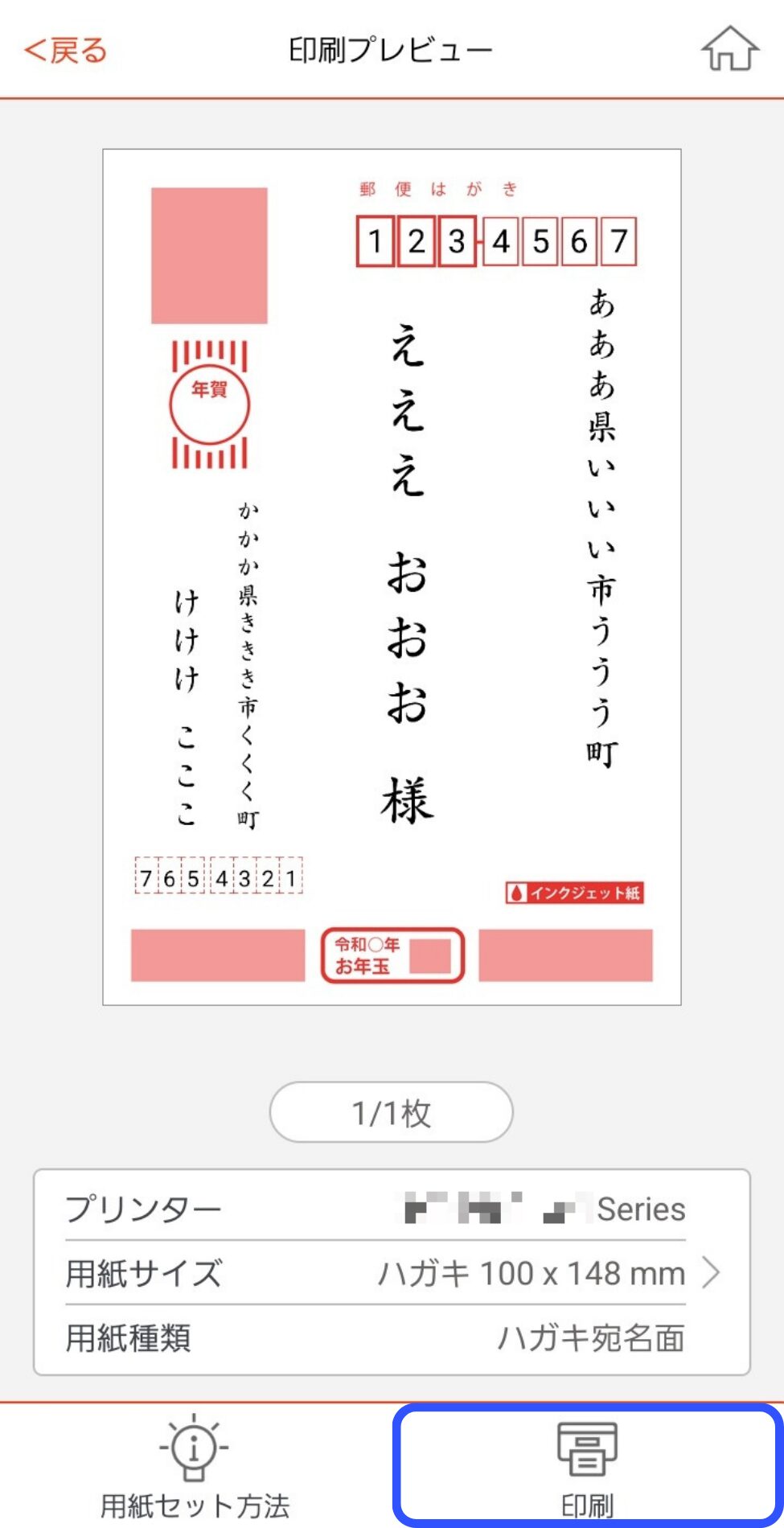そのため、先に宛名面を印刷して頂くことをおすすめします!