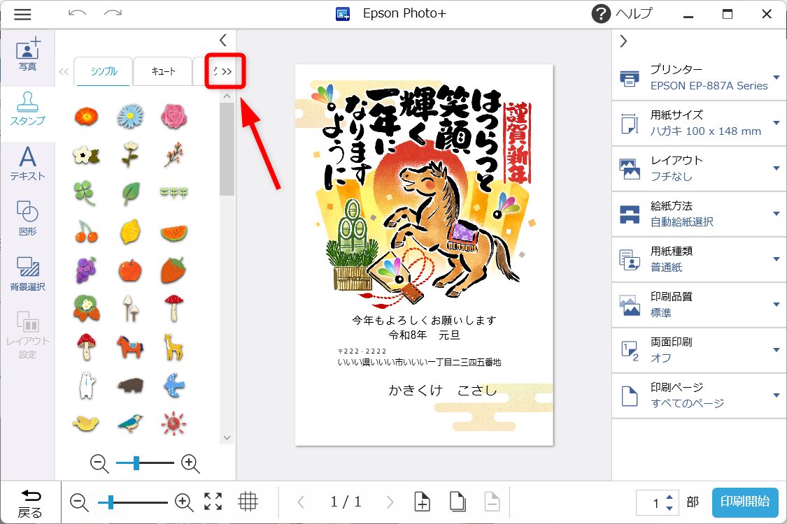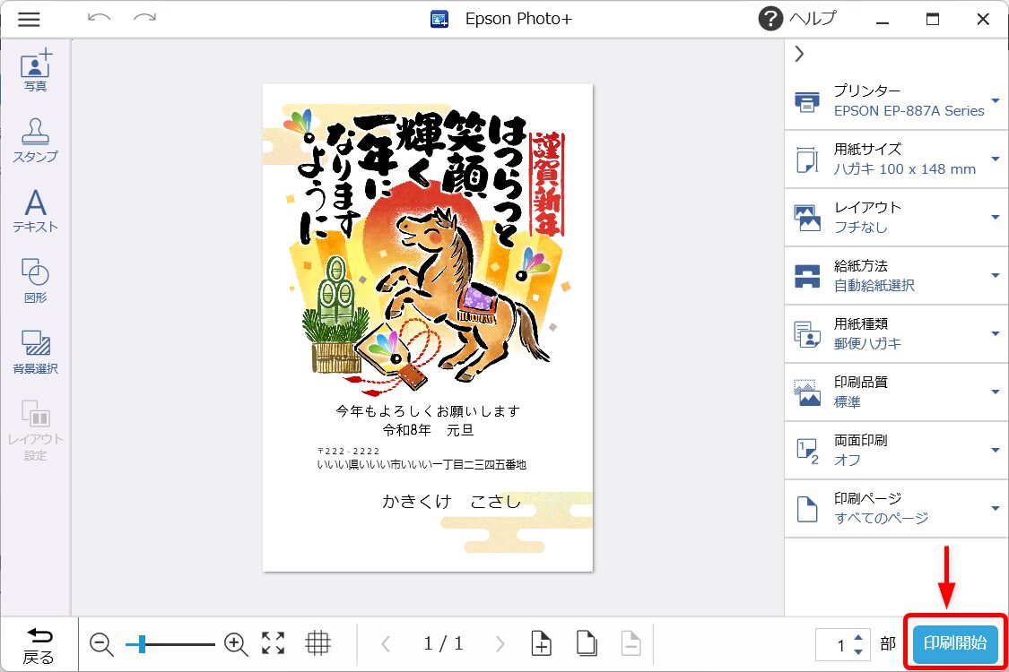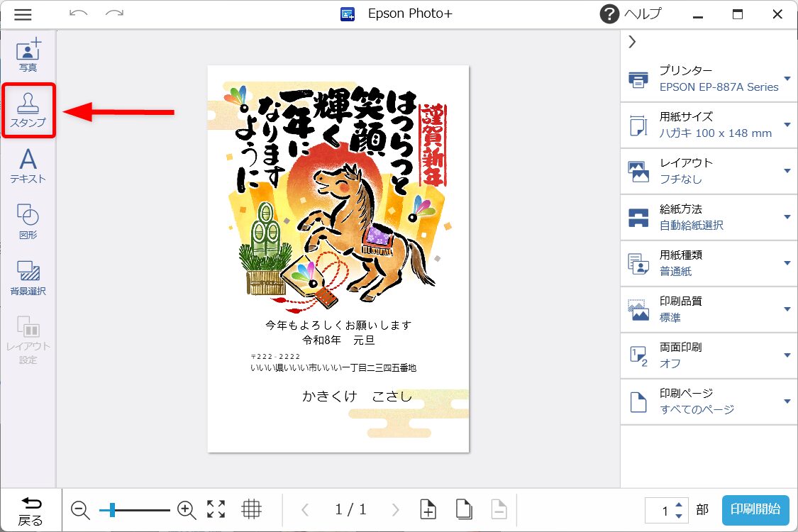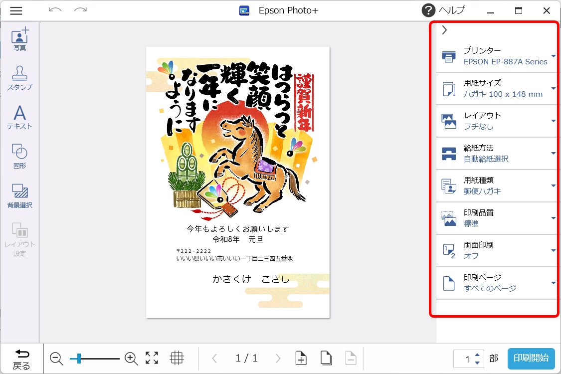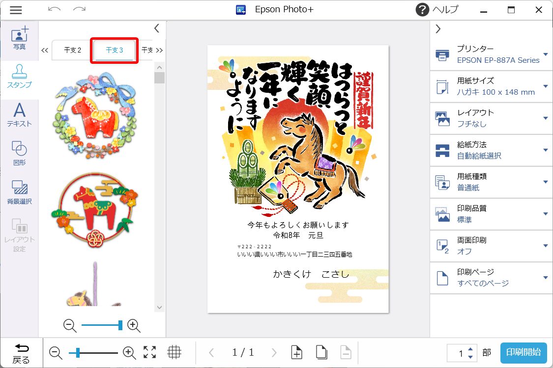 Epson Photo+で年賀状を作成する方法を画像付きで解説します。