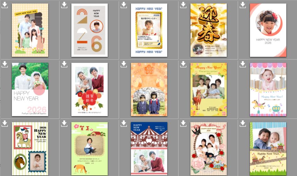 写真が挿入できるタイプのデザインもあり、オリジナルの年賀状を作ることもできますよ。