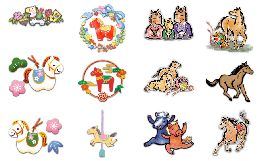 ③「干支1」「干支2」「干支3」をクリックすると午年のスタンプが選べます。